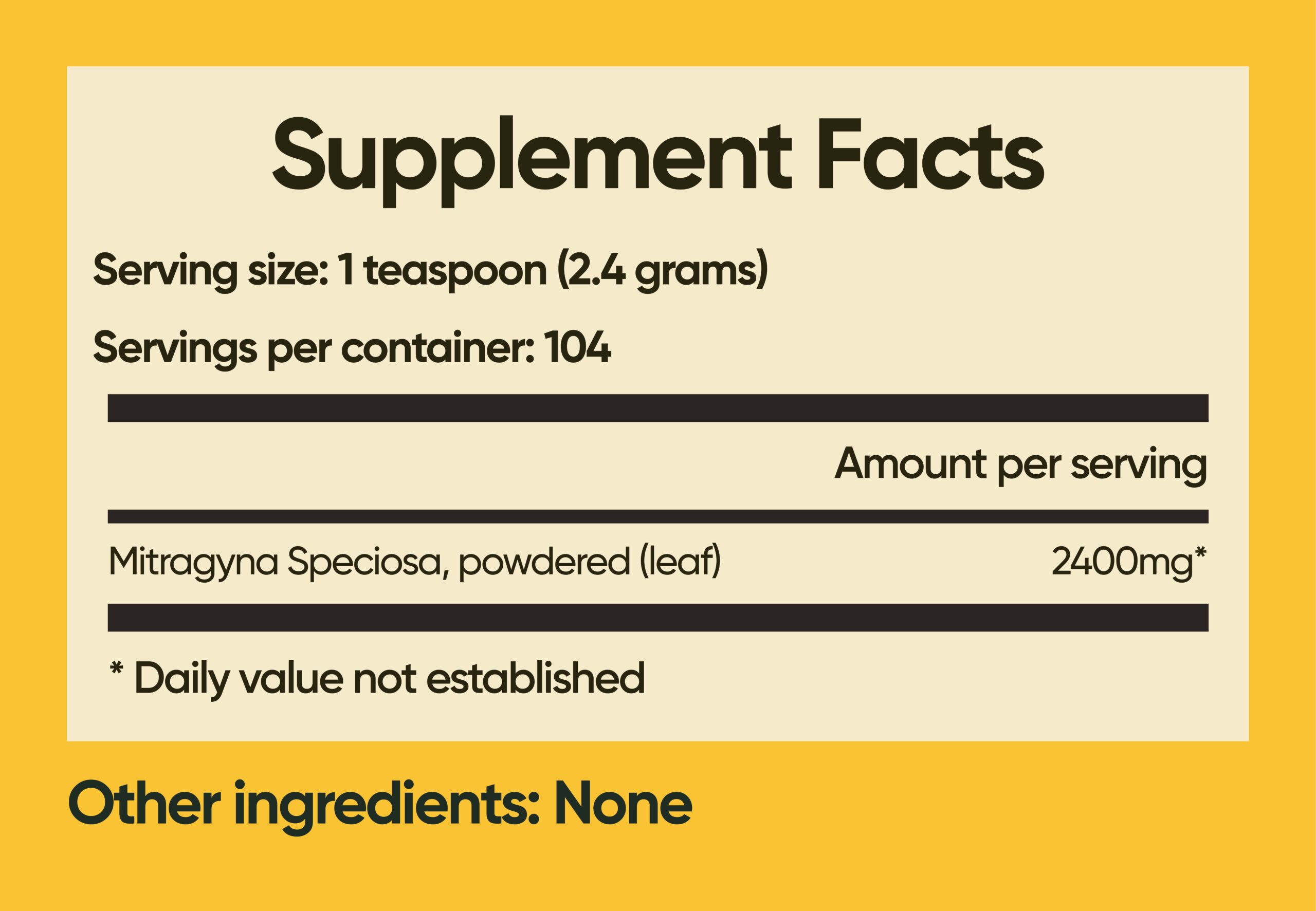 Mitragyna speciosa leaf powder inside a gelatin capsule. No other fillers or additives. Just pure leaf!